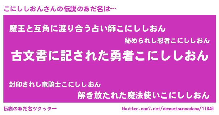 | ヒーロー風カッコイイあだ名 | 『ネオコニシシオン』『暗黒騎士コニ』 |