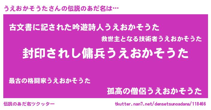 | ヘコむあだ名 | 『うえにゅー』『うえおかそうた(笑)』 |