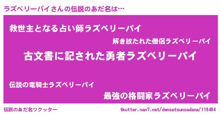 | ヒーロー風カッコイイあだ名 | 『ネオラズベリーパイ』『暗黒騎士ラズ』 |