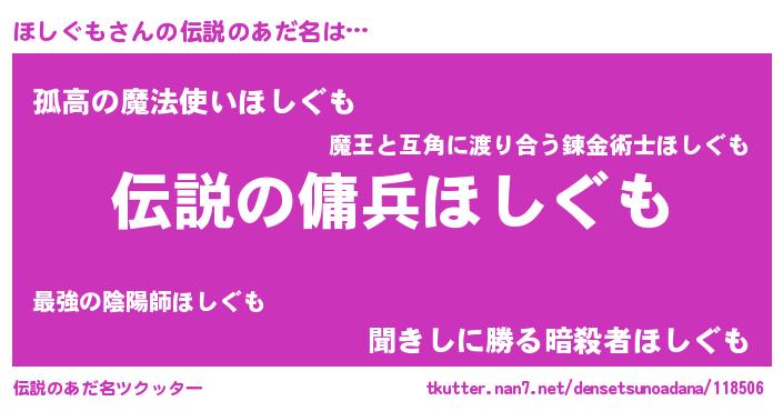 | 意味不明あだ名 | 『ペロリンほしぐも』『自称ほしぐも』 |