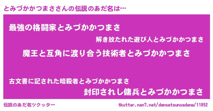 | 女子向けラノベタイトル風あだ名 | 『とみづかかつまさ恋絵巻』 |