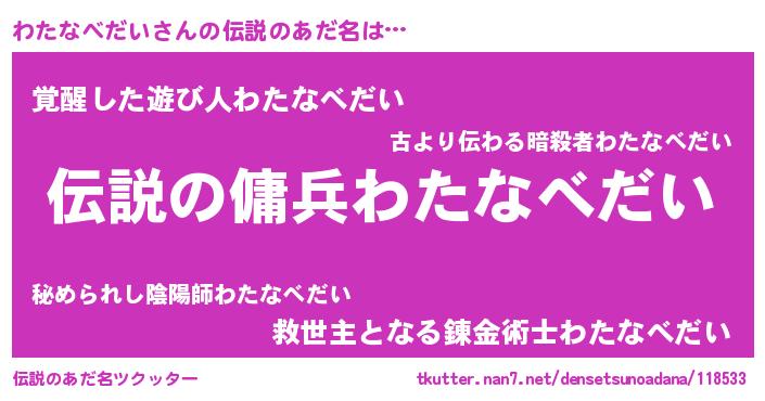 | ヒーロー風カッコイイあだ名 | 『スーパーワタナベダイ』『幻影騎士ワタ』 |