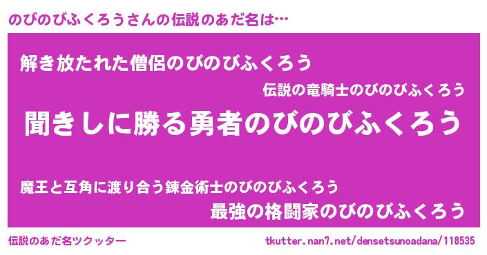 | 男性向けラノベタイトル風あだ名 | 『のびのびふくろうという概念が存在しない退屈な世界 』 |