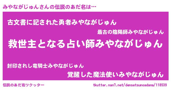| ヒーロー風カッコイイあだ名 | 『天空の使者みやながじゅん』 |