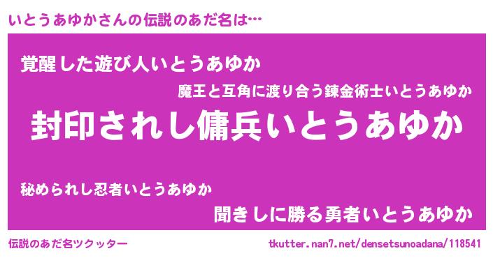 | 男性向けラノベタイトル風あだ名 | 『イトウアユカアートオンライン』 |