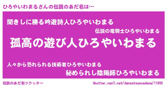 | ヘコむあだ名 | 『ひろぷりん』『ひろやいわまる(笑)』 |