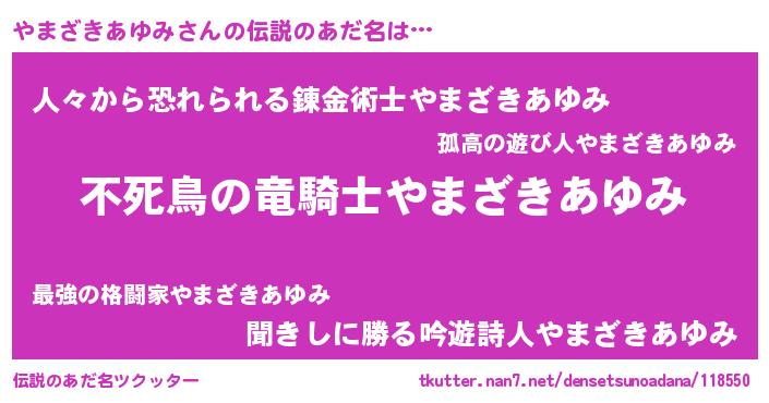 | ヘコむあだ名 | 『やまにー』『やまざきあゆみ(遠い目)』 |
