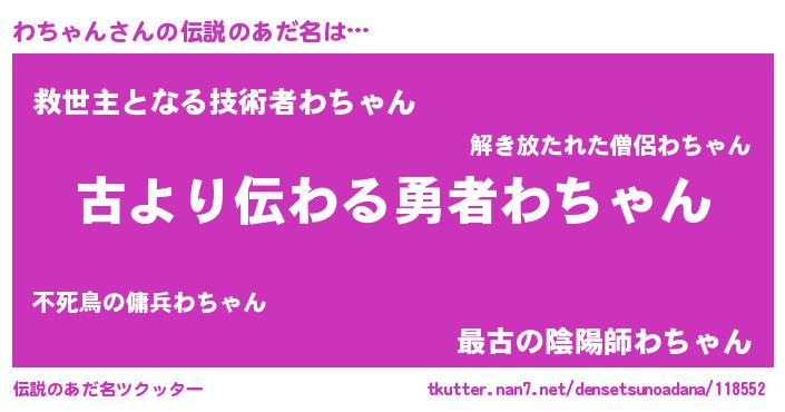 | 意味不明あだ名 | 『永久保存わちゃん』『自称わちゃん』 |
