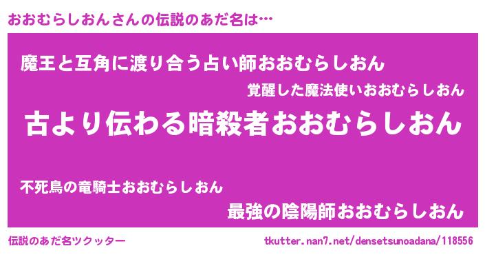| 男性向けラノベタイトル風あだ名 | 『転生したらおおむらしおんだった件』 |
