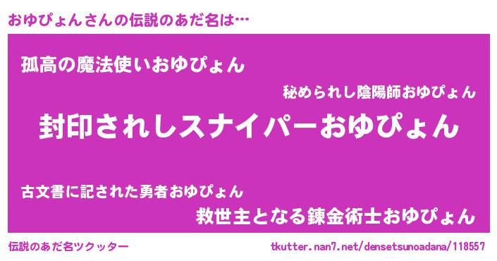 | 胡散臭い通販商品みたいなあだ名 | 『億万長者になれる霊験あらたかなお札…その名も「おゆぴょん」』 |