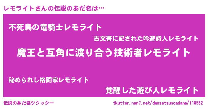 | ヘコむあだ名 | 『レモふぇ~』『レモっ子』 |