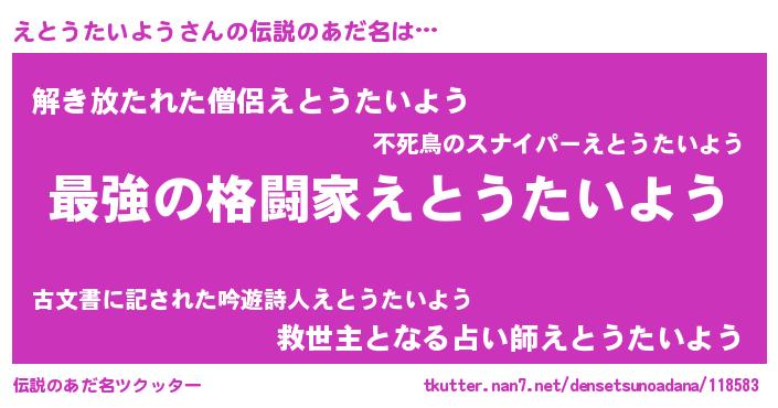 | 意味不明あだ名 | 『えとうたいようフォーエバー』 |