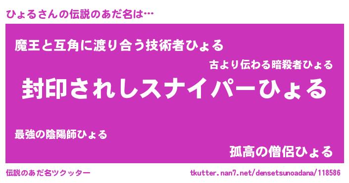 | 意味不明あだ名 | 『ペロリンひょる』『自称ひょる』 |