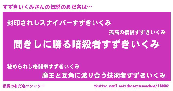肩書あだ名 | 『すずきいくみ校長』『すずきいくみ中佐』 |