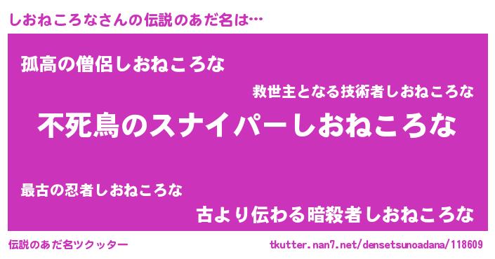 | 胡散臭い通販商品みたいなあだ名 | 『モテモテ間違いなし霊験あらたかなお札…その名も「しおねころな」』 |