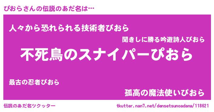 | 肩書あだ名 | 『ぴおら上級大将』『ぴおらCEO』 |