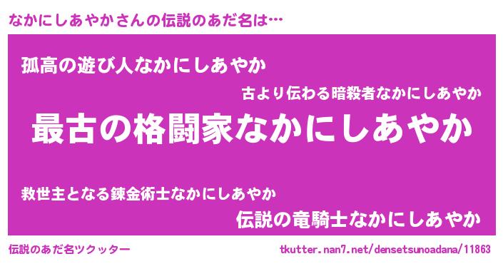 | ファンタジー風あだ名 | 『エターナルナカニシアヤカー』 |