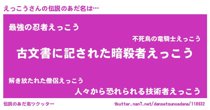 | 意味不明あだ名 | 『住所不定無職えっこう(47歳)』 |
