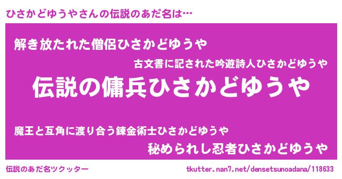 | ヒーロー風カッコイイあだ名 | 『スーパーヒサカドユウヤ』 |