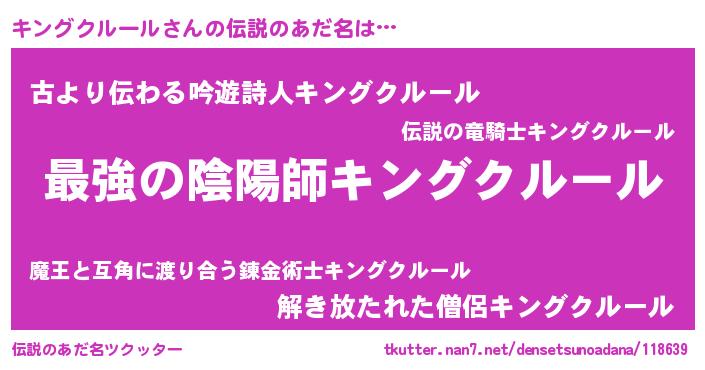 | 意味不明あだ名 | 『住所不定無職キングクルール(86歳)』 |