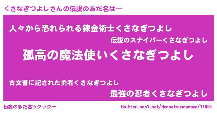 | 男性向けラノベタイトル風あだ名 | 『ダンジョンにくさなぎつよしを求めるのは間違っているだろうか』 |