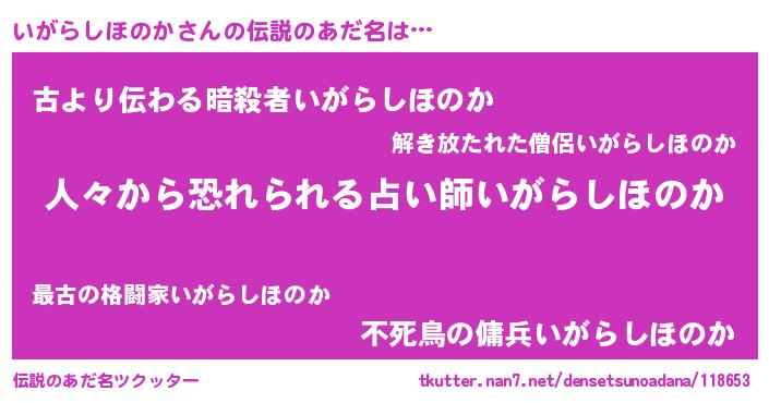 | 胡散臭い通販商品みたいなあだ名 | 『100人中100人が認めたイリジウム磁石…その名も「いがらしほのか」』 |