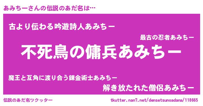 | ヒーロー風カッコイイあだ名 | 『スーパーアミチー』『最強戦士アミチー』 |