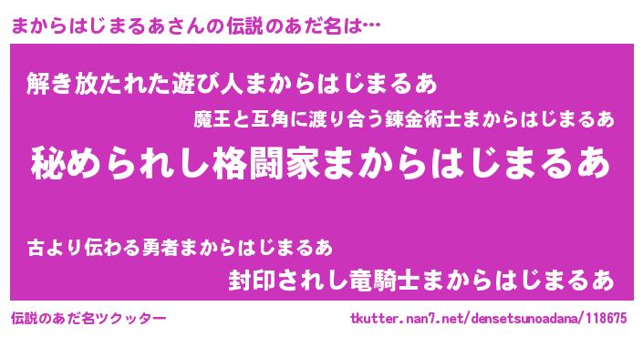 | 意味不明あだ名 | 『まからはじまるあフォーエバー』 |