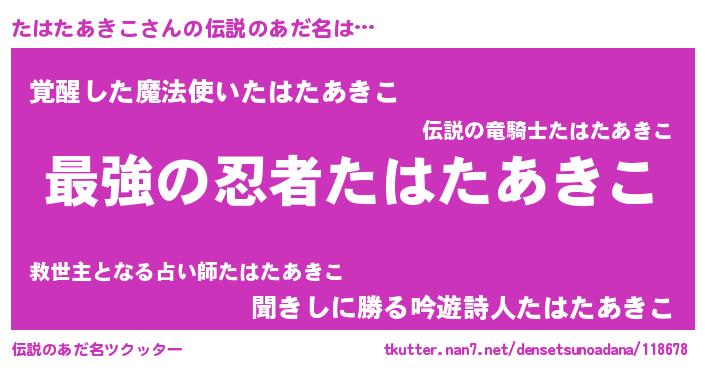 | ファンタジー風あだ名 | 『エターナルタハタアキコー』 |