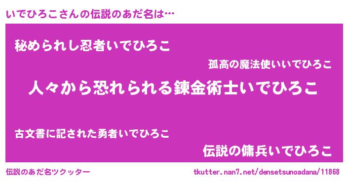 | 男性向けラノベタイトル風あだ名 | 『イデヒロコスレイヤー』 |