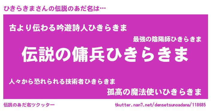 | ヒーロー風カッコイイあだ名 | 『ウルトラ戦士ヒキラキマ』 |