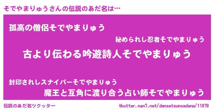 | ヒーロー風カッコイイあだ名 | 『サイバー戦士ソデヤマリュウ』 |