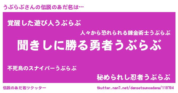 | 意味不明あだ名 | 『永久保存うぶらぶ』 |