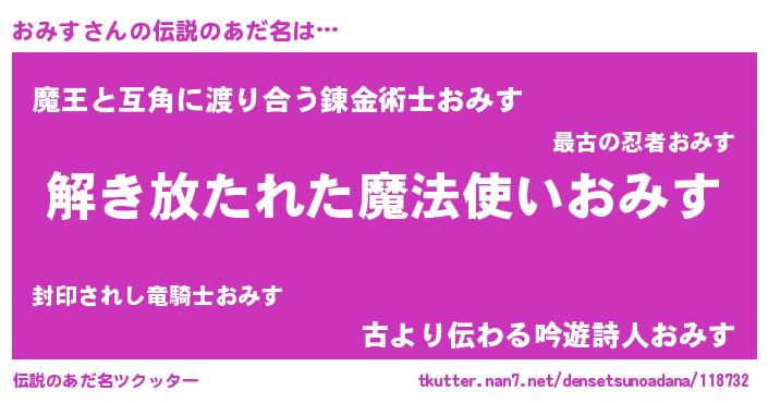 | ヒーロー風カッコイイあだ名 | 『幻影騎士オミ』『愛の使者おみす』 |
