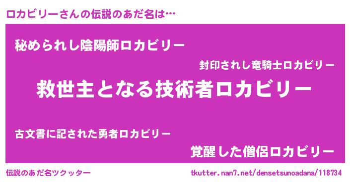 | ヒーロー風カッコイイあだ名 | 『天空の使者ロカビリー』『仮面ロカダー』 |