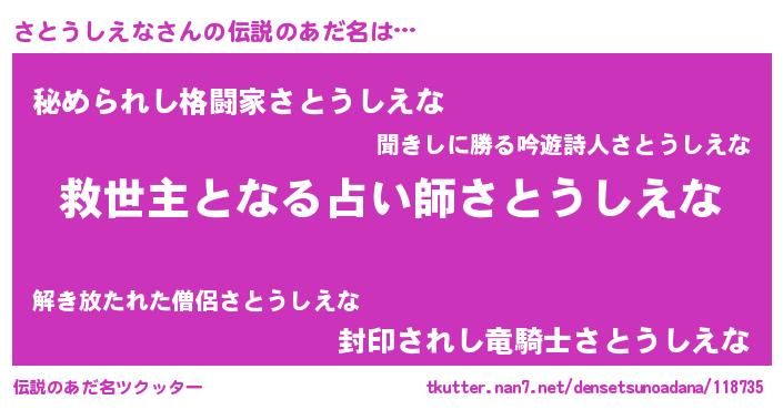 | ポケモン風あだ名 | 『サックウザ』『サトウダネ』 |