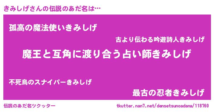| ヒーロー風カッコイイあだ名 | 『慈愛の使者きみしげ』『仮面キミダー』 |