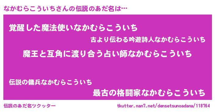 | 男性向けラノベタイトル風あだ名 | 『なかむらこういちに滅ぼされるだけの簡単なお仕事です』 |