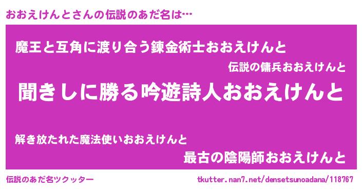 | 意味不明あだ名 | 『永久保存おおえけんと』 |