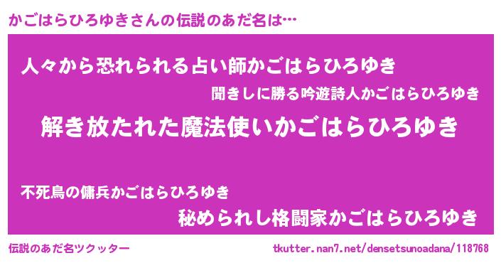 | 肩書あだ名 | 『かごはらひろゆき中佐』 |