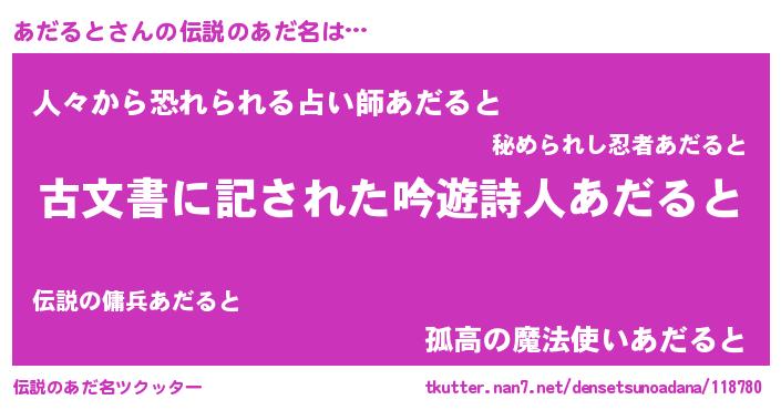 | 意味不明あだ名 | 『永久保存あだると』『自称あだると』 |
