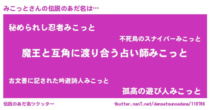 | ヒーロー風カッコイイあだ名 | 『愛の使者みこっと』『銀牙騎士ミコ』 |