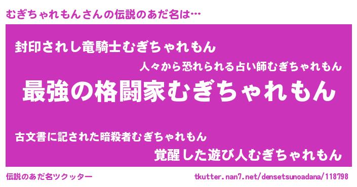 | ヒーロー風カッコイイあだ名 | 『最強戦士ムギチャレモン』 |