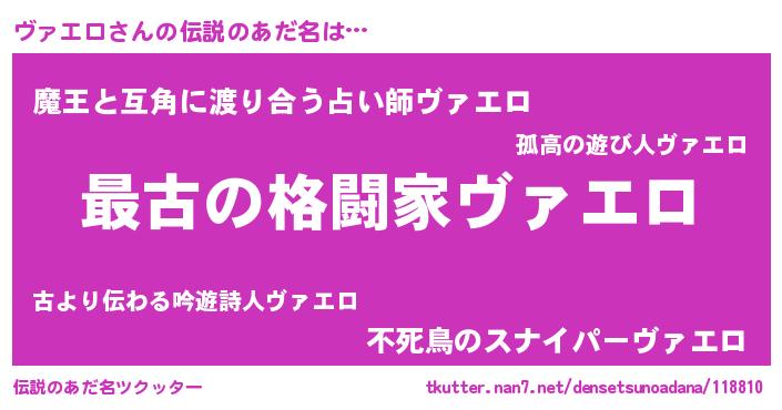 | 意味不明あだ名 | 『自称ヴァエロ』『ヴァエロフォーエバー』 |
