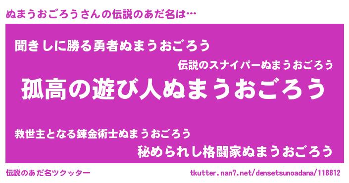 | 自動車の名前っぽいあだ名 | 『ランヌマギーニ』『ヌルトマパン』 |