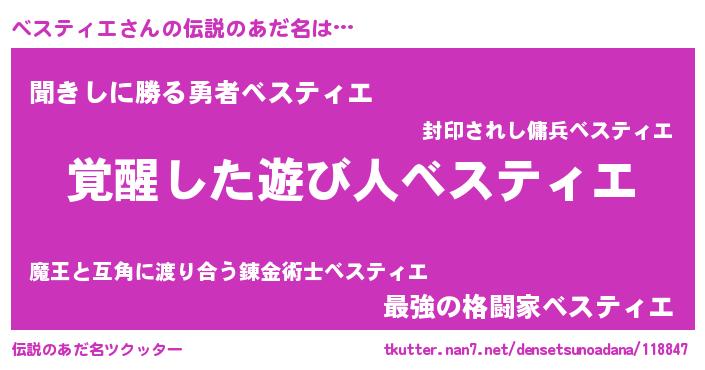 | ヘコむあだ名 | 『ベスっちょ』『ベスティエ(震え声)』 |