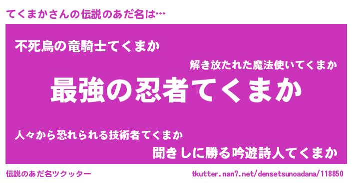 | ヒーロー風カッコイイあだ名 | 『ウルトラてくまかマン』『ネオテクマカ』 |