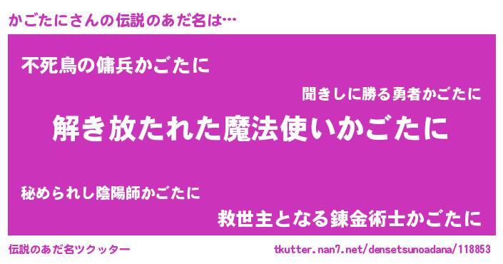 | 男性向けラノベタイトル風あだ名 | 『ダンジョンにかごたにを求めるのは間違っているだろうか』 |