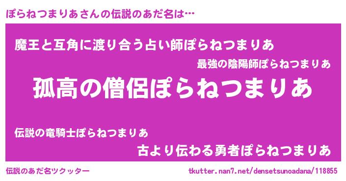 | 胡散臭い通販商品みたいなあだ名 | 『信頼と実績のネックレス…その名も「ぽらねつまりあ」』 |