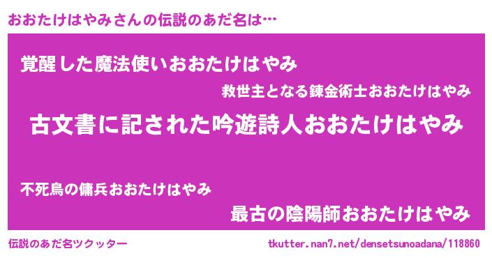 | ヘコむあだ名 | 『おおたけはやみ(笑)』『おおお』 |